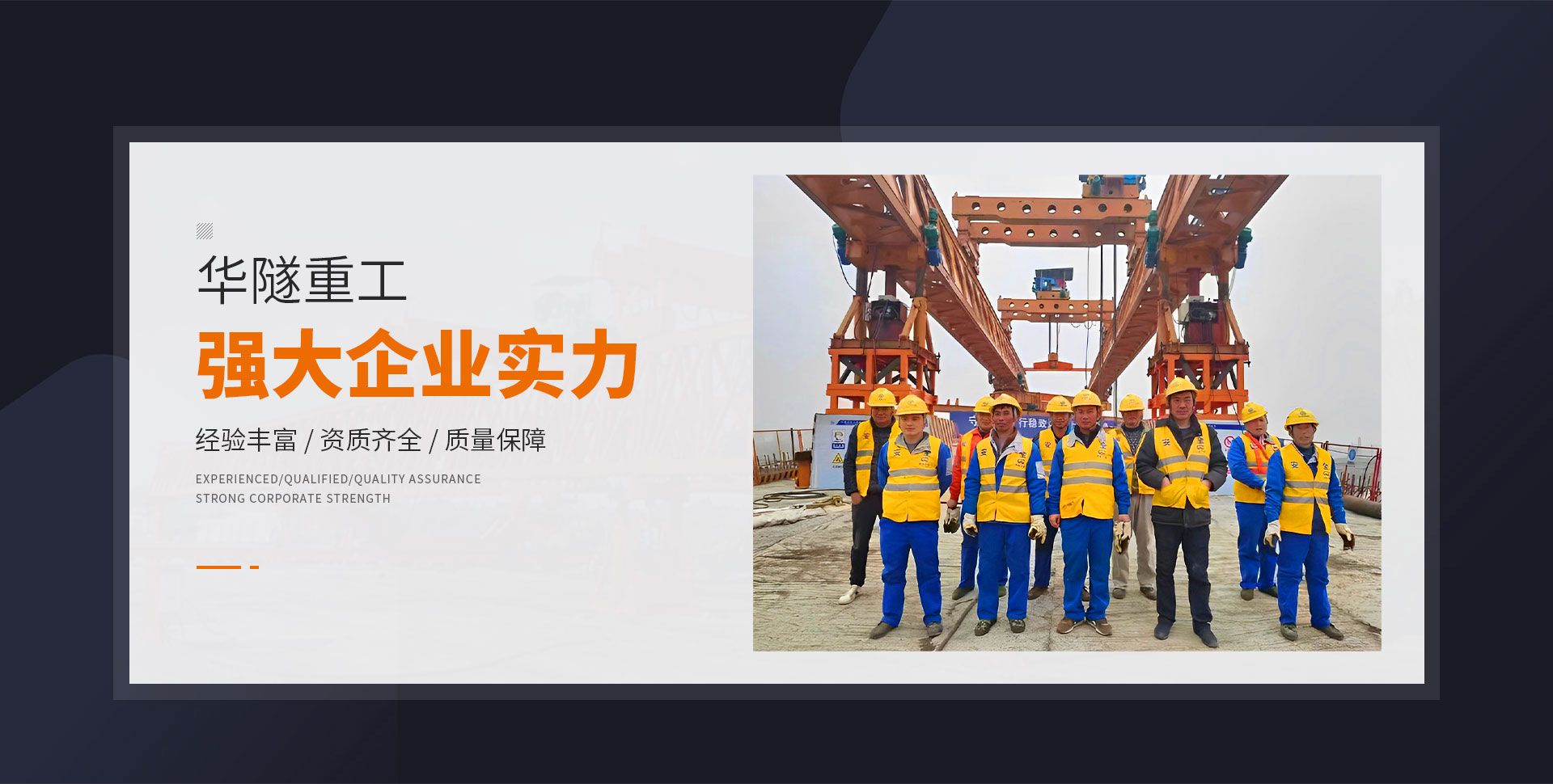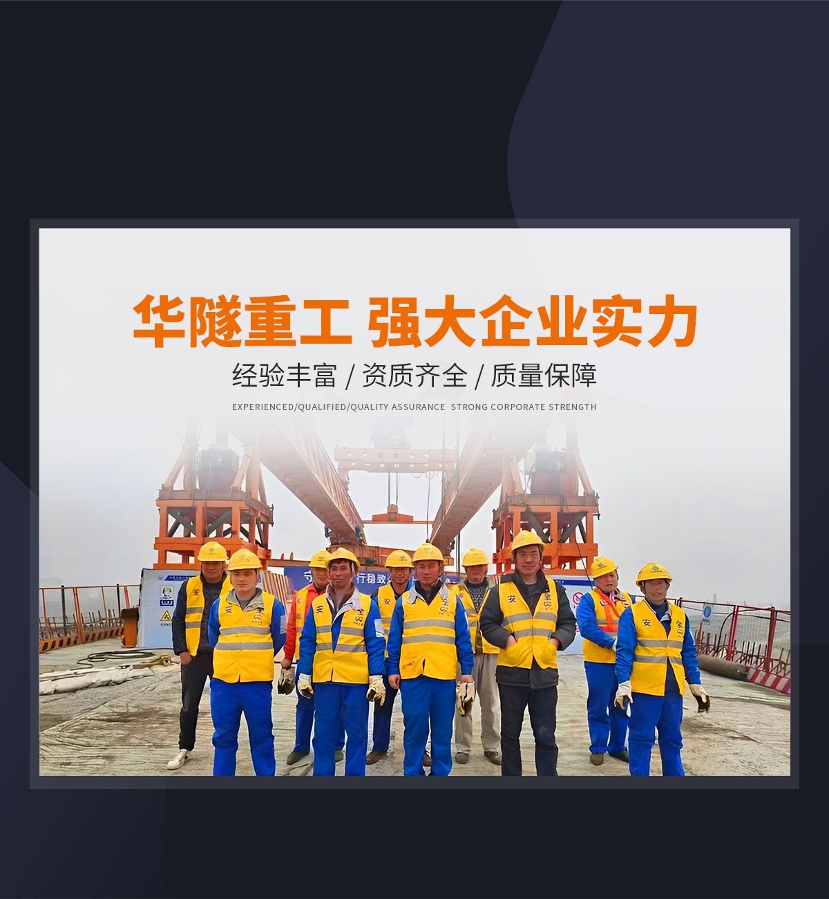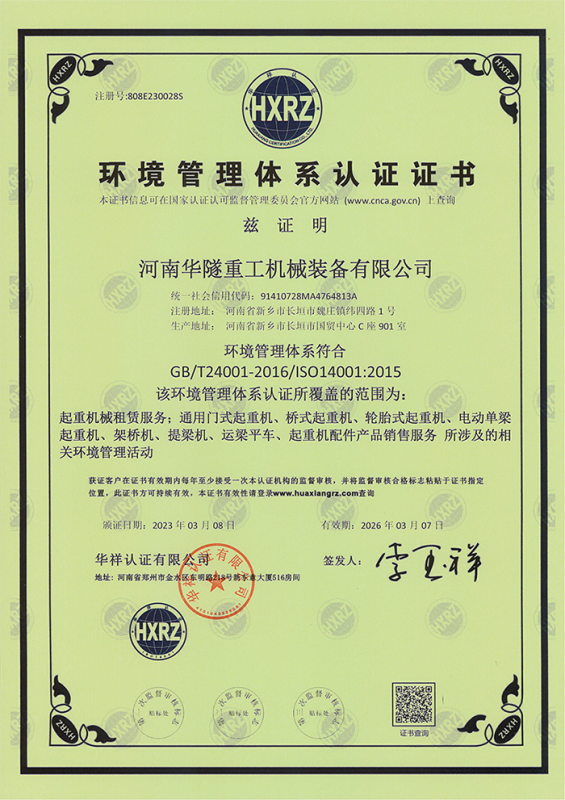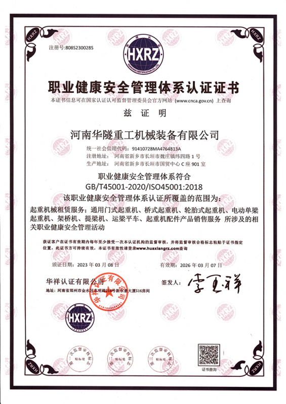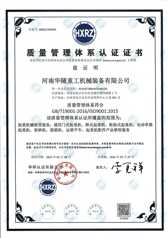 河南華隧重工機械裝備有限公司主要從事通用門式起重機、橋式起重機、電動單梁起重機,輪胎式起重機、架橋機、提梁機、遠梁平車、鋼絲繩電動萌蘆、卷揚機、起重配件制造、銷售:起重機械租賃、安裝和維修,起重設備園收,機械設備維修,鋼結構工程承包,橋梁工程及技術咨淘服務,銷售五金制品、機電設備:建設工程監理,建設工程設計,各類工程建設活動,建筑勞務分包,建筑物折除作業,施工作業,工程管理服務,土石方工程施工,裝如發運?! 」疽淹ㄟ^IS0國際質量、環境、健康與安全三合一標準認證,特種設備制造許可證和特種設備安裝改造維修許可證。擁有完熟的質量管理體系。嚴格的管理制度,強大的生產能力和先進的檢測手段,在保證產品質量的同時,也具備了極強的市場競爭力?! 」緢猿挚萍紕撔聻槔砟睿a品質量為核心,注重信譽,建立了減信可靠、快捷、思速。便利周到的售后服務網絡。  我們擁有的技術專家和技術服務隊伍為客戶提供充善的售前技術支持和全天候的售后服務體系,讓您無后顧之憂,享受一站式的超值服務?!  叭A隧重工,伴您成功“是華隧重工永遠的宗指,真被的希望與各界朋友攜手并進。共創輝準!